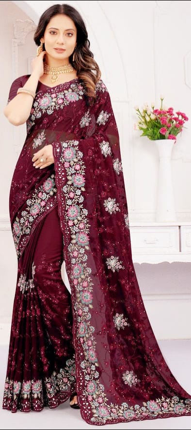 ইন্ডিয়ান জর্জেট শাড়ি ব্লাউজ পিস সহ