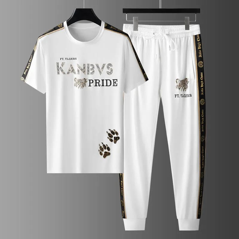 পুরুষদের জন্য প্রিমিয়াম কোয়ালিটির স্টাইলিস্ট প্রিন্টেড হাফ স্লিভ টি-শার্ট এবং ফুল প্যান্ট (সেট)